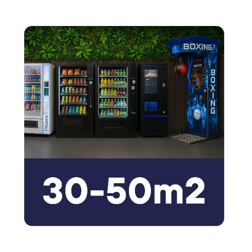 Deze bundel is geschikt voor een automatenshop van 30-50 m2. Perfect voor automatenshops met veel verkeer of veel verschillende producten. Je bespaart €17.250 door het gebruik van connectable automaten.