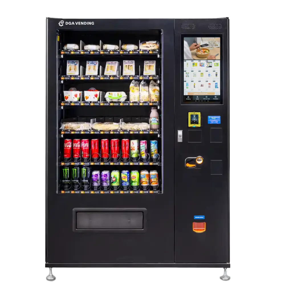 De DGA Lynova 10 Touch is een veelzijdige combi-automaat met liftfunctie en rollerbanden, geschikt voor snacks, dranken en kwetsbare producten. Het 21,5 inch touchscreen en slimme indeling maken de automaat ideaal voor moderne omgevingen waar gebruiksgemak en variatie centraal staan.